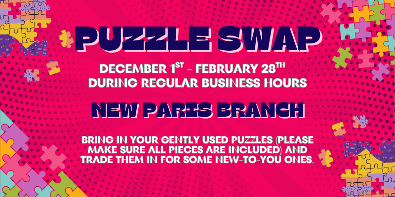 Bring in your gently used puzzles from December 1st - February 28th, during regular business hours and trade them for some new-to-you ones. Please make sure […]