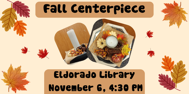 Make a fall themed centerpiece to warm your table! Registration recommended. Please register by calling the Eldorado Library at (937) 273-4933, or by stopping by!